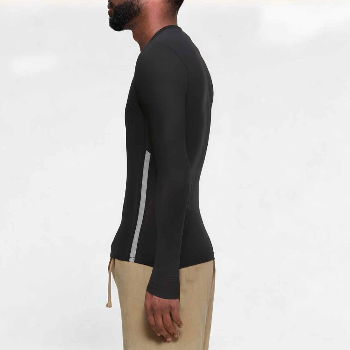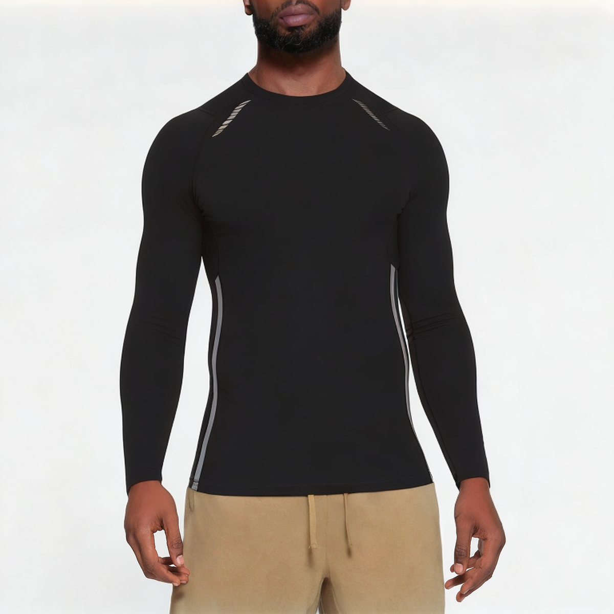 This men’s long-sleeved sports shirt combines modern design with practical functions for an active lifestyle. The crew neck design is simple and elegant, and the reflective elements enhance safety during night activities. Elastic cuffs and stretchy fabric ensure a comfortable fit and enhance mobility during activities.