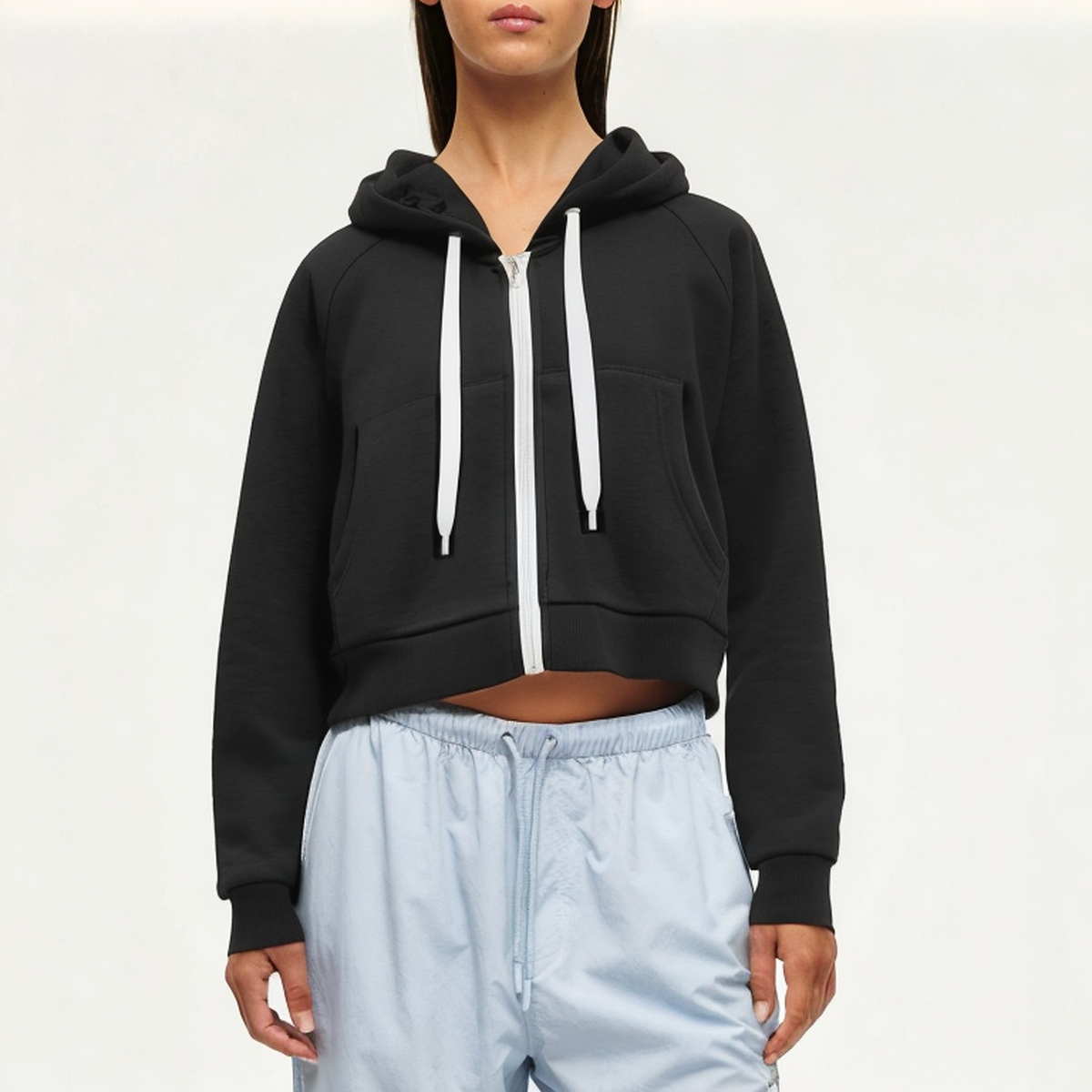 Combining comfort and practicality, this women’s sweatshirt jacket is perfect for a variety of sports and leisure occasions. The solid color design makes it easy to match and add a touch of vitality to your daily look. The hooded design provides you with extra protection, while the elastic cuffs ensure a fit without affecting your flexibility.