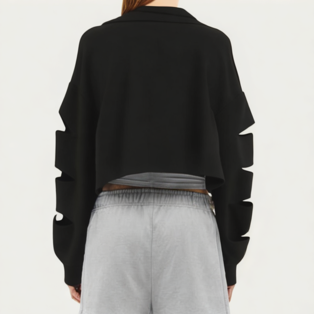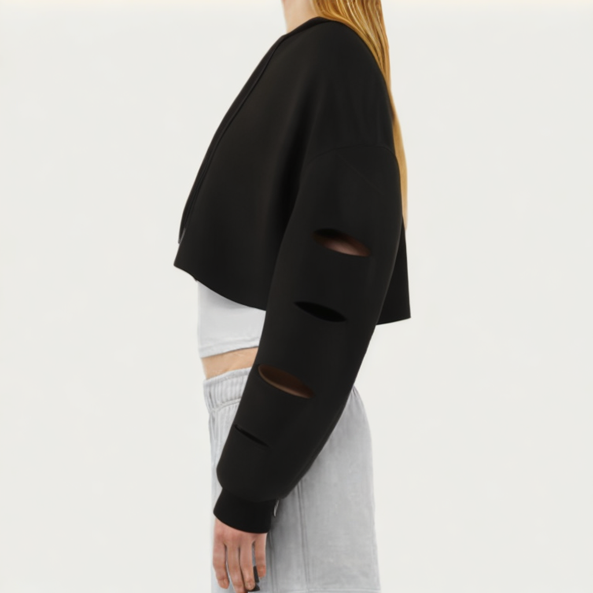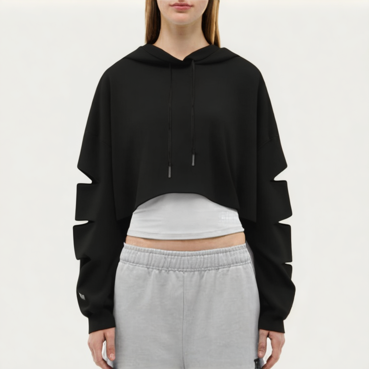 This loose-fitting long-sleeved T-shirt for women is stylish and functional with a practical hoodie. The solid color design is simple yet stylish, suitable for a variety of occasions. The hollow long sleeves add breathability and style, and the elastic cuffs provide you with a comfortable wearing experience. The loose version allows more freedom of movement, suitable for leisure time or outdoor activities.