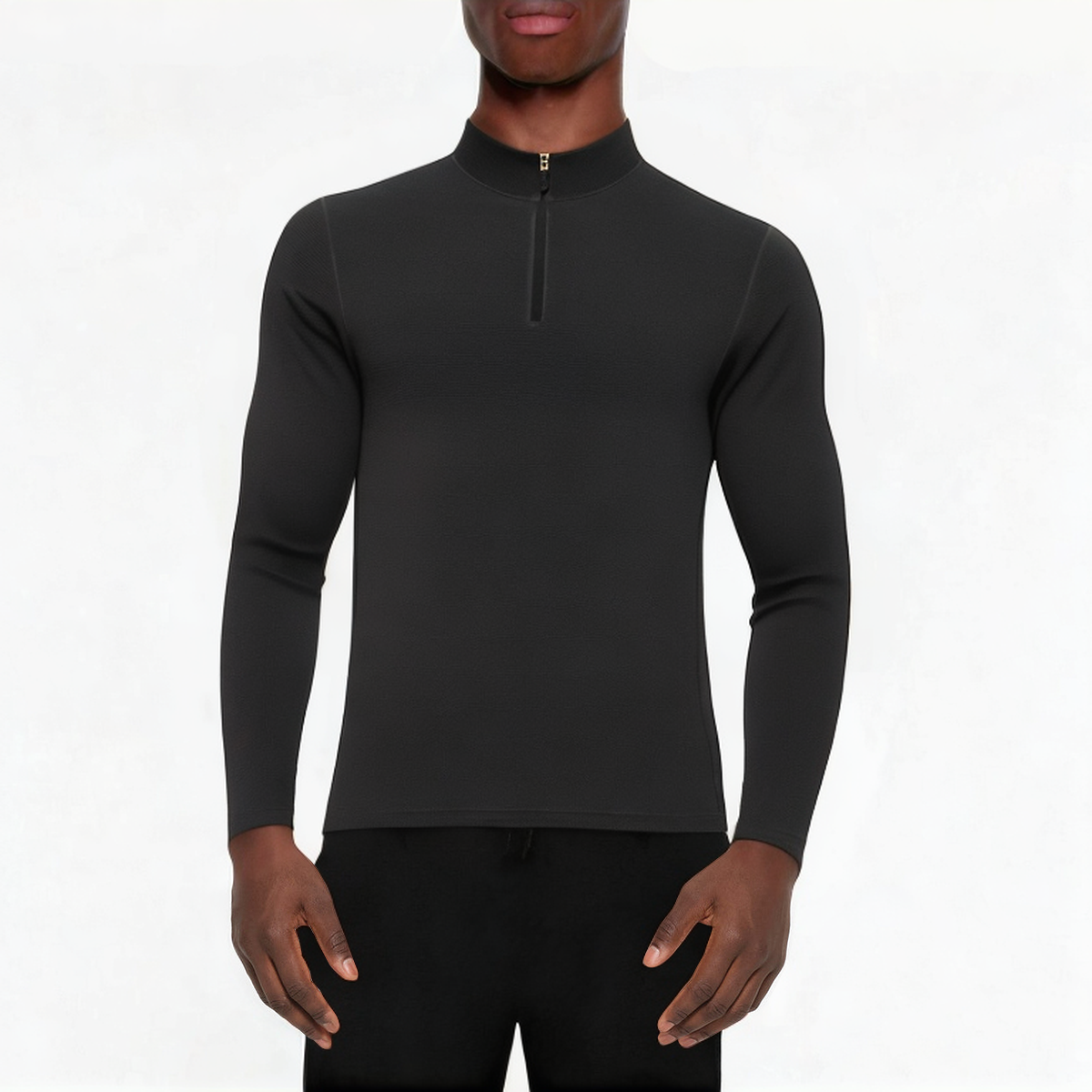 This men’s quarter-zip sweatshirt features a simple solid color design. The combination of a stand-up collar and a 1/4 zipper not only enhances the sense of fashion, but also makes it easy to put on and take off. The slim fit shows an elegant figure, and the elastic cuff design provides greater flexibility for movement. Its comfortable and quick-drying properties ensure that you stay dry after high-intensity exercise.