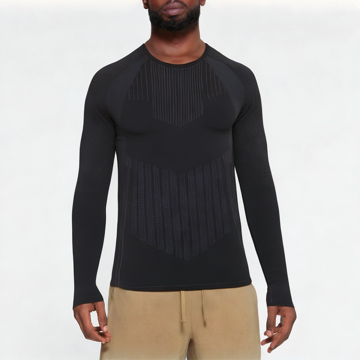 This men’s sports long-sleeved shirt features a crew neck design and a simple and stylish solid color style. Its soft and comfortable fabric makes every exercise feel comfortable. The quick-drying function effectively absorbs moisture and perspiration, ensuring that you stay dry and comfortable after high-intensity exercise. The elastic cuff design fits the wrist and enhances flexibility during exercise.