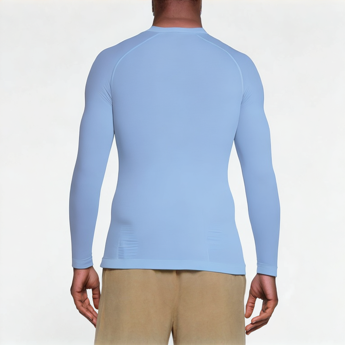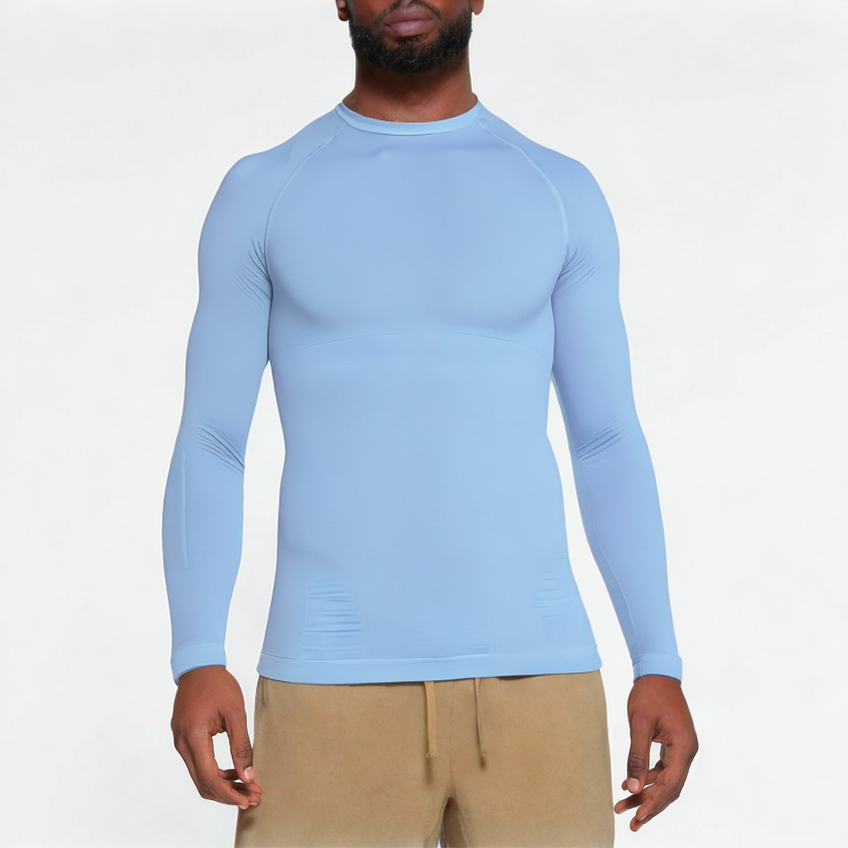 This men’s sports long-sleeved shirt features a solid color design, showing a simple and classic style, suitable for a variety of sports and leisure occasions. The round neck design provides a comfortable fit, and the elastic cuffs ensure a snug fit and prevent sliding during activities. The flat-lock seam process enhances abrasion resistance and provides a long-lasting wearing experience.