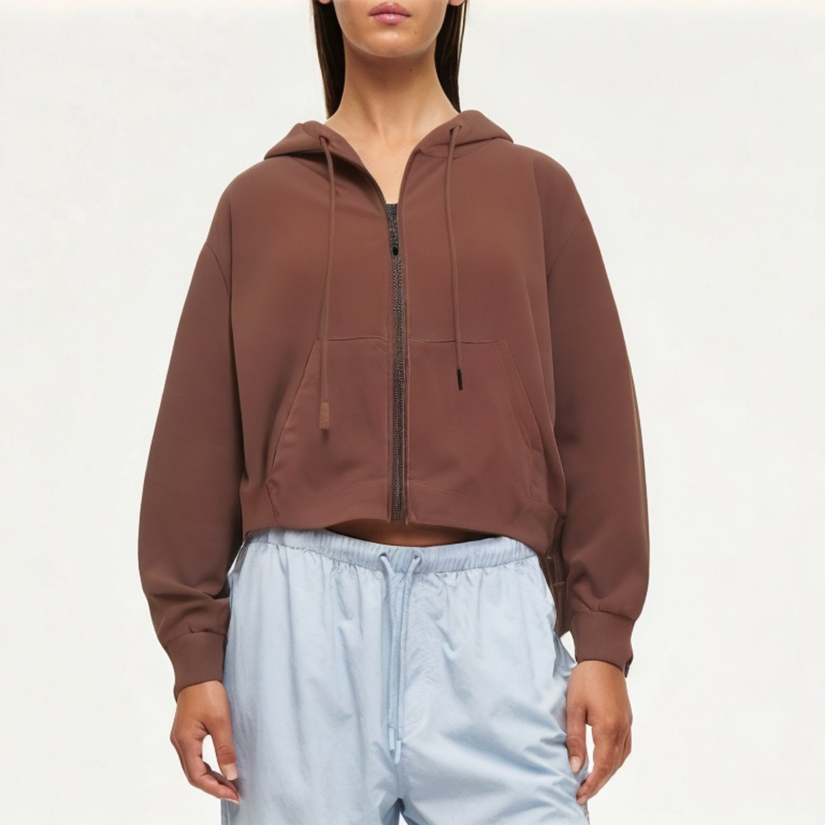 Brown cotton women’s sweatshirt jacket