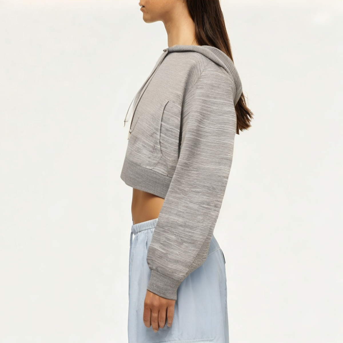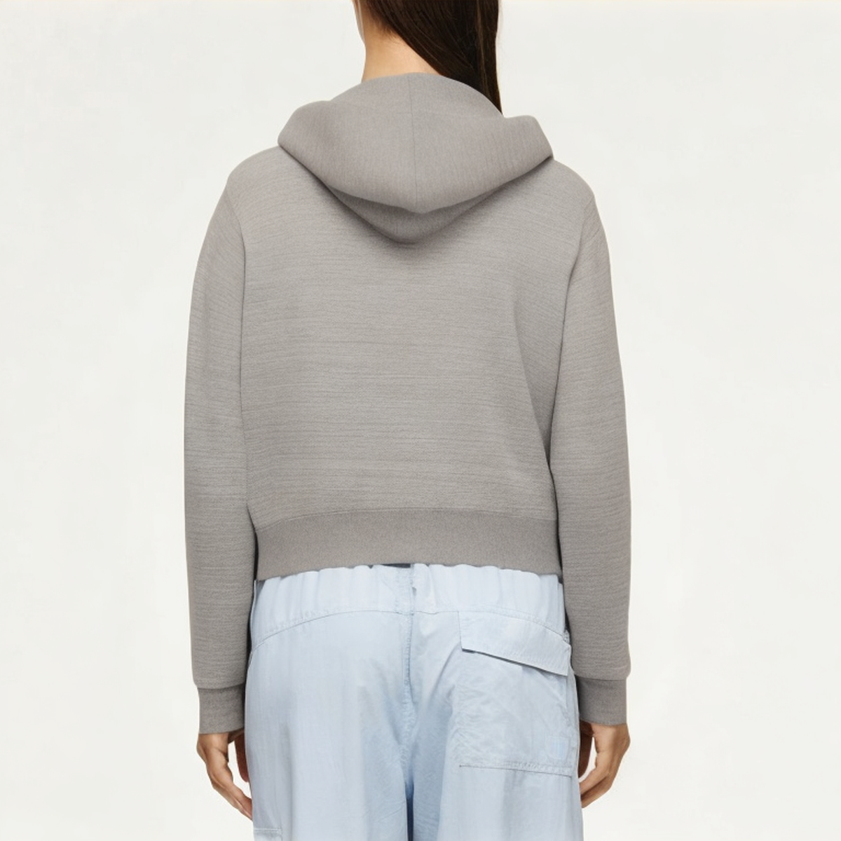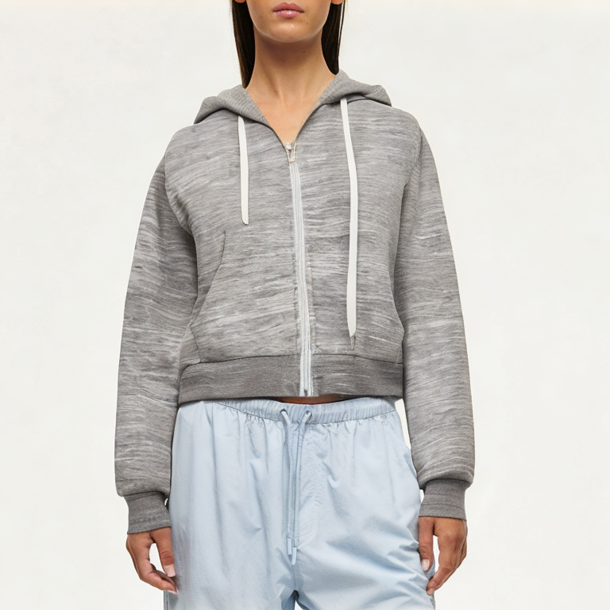 This sweatshirt jacket for women combines style and functionality, making it the perfect choice for both sports and leisure. The hooded design provides extra protection, making it suitable for all weather conditions. Elastic cuffs ensure a snug fit and allow for easy movement without being restrictive. Front pockets are designed to store small items and zip closures for added convenience.