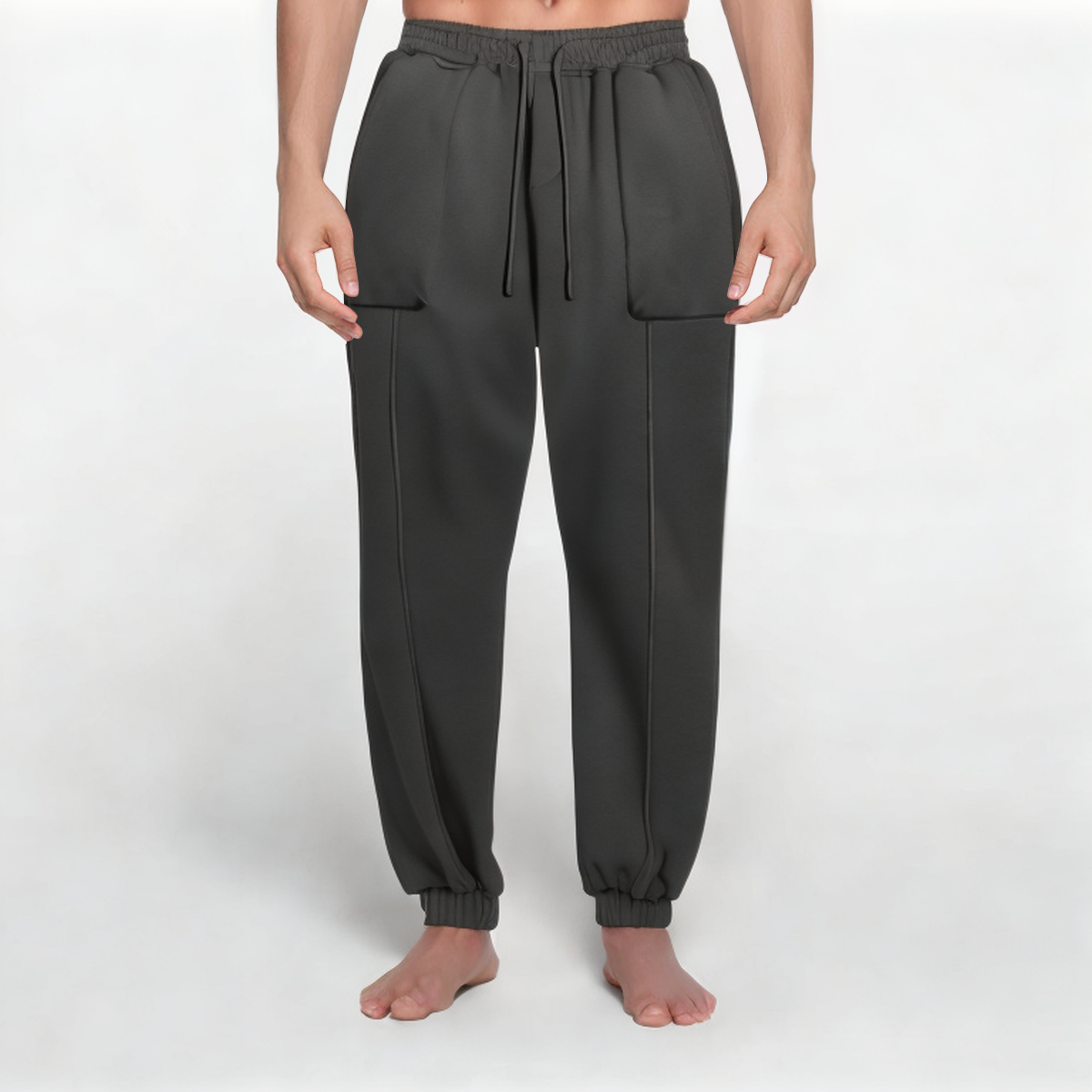 These men’s sports trousers feature a classic solid design and thickened fabric for cooler weather. The elastic cuffs lock in warmth, while the elastic waist and drawstrings provide a flexible fit. The trousers have practical pockets for storing small items and anti-pilling features to ensure lasting look and comfort for both active and casual occasions.