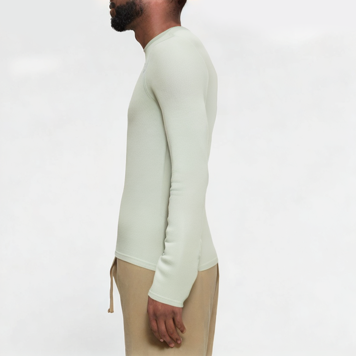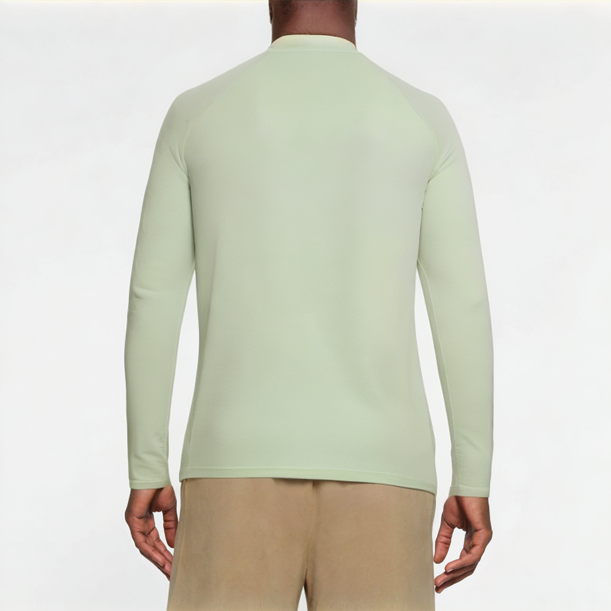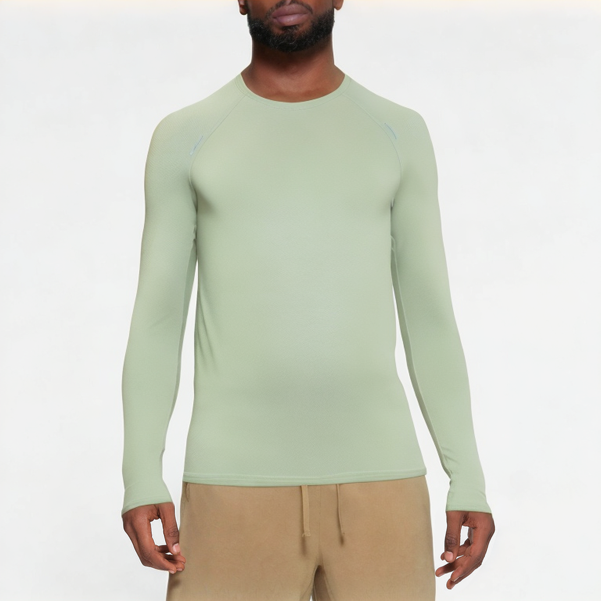 This men’s sports long-sleeved shirt features a round neck design, which is simple and generous, suitable for a variety of sports occasions. The solid color design makes it easy to match with other sportswear, and the seamless process greatly improves the wearing comfort, reduces friction, and ensures flexibility and freedom during intense activities. The quick-drying properties keep you dry after high-intensity training, and the elastic cuff design provides a better fit for the wrist and enhances the overall sports experience.
