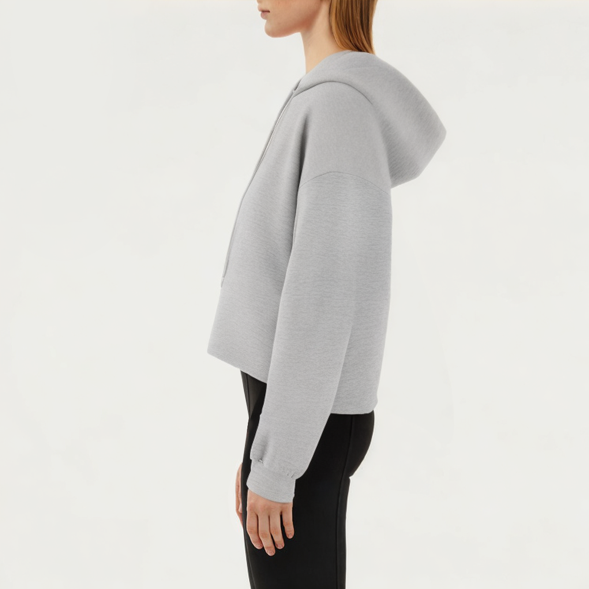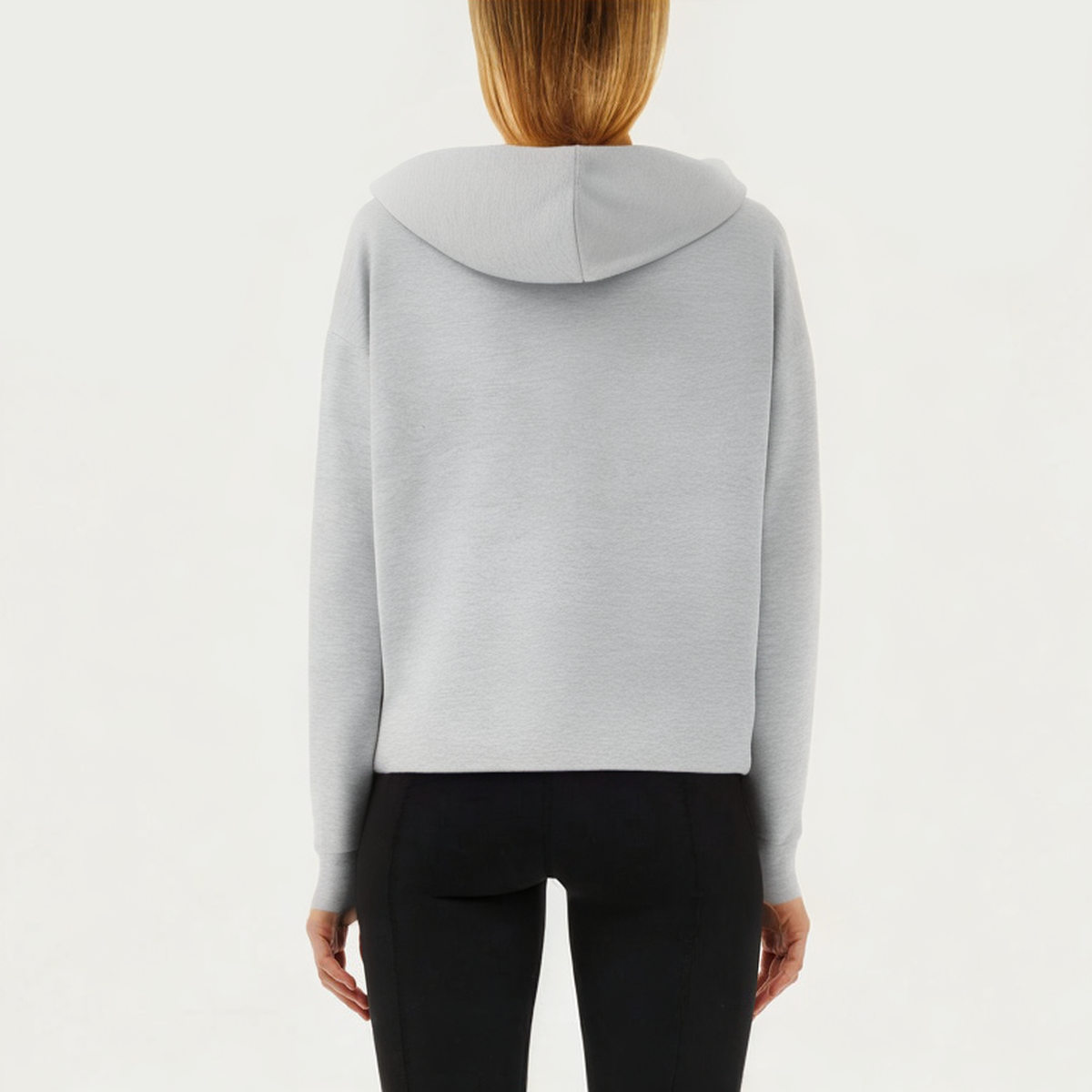 This women’s sports sweatshirt adopts a simple solid color design, showing the perfect combination of fashion and vitality. The hooded design not only enhances the overall shape, but also effectively blocks the wind, suitable for various outdoor activities. The elastic cuffs provide a flexible fit, making it more comfortable when exercising.