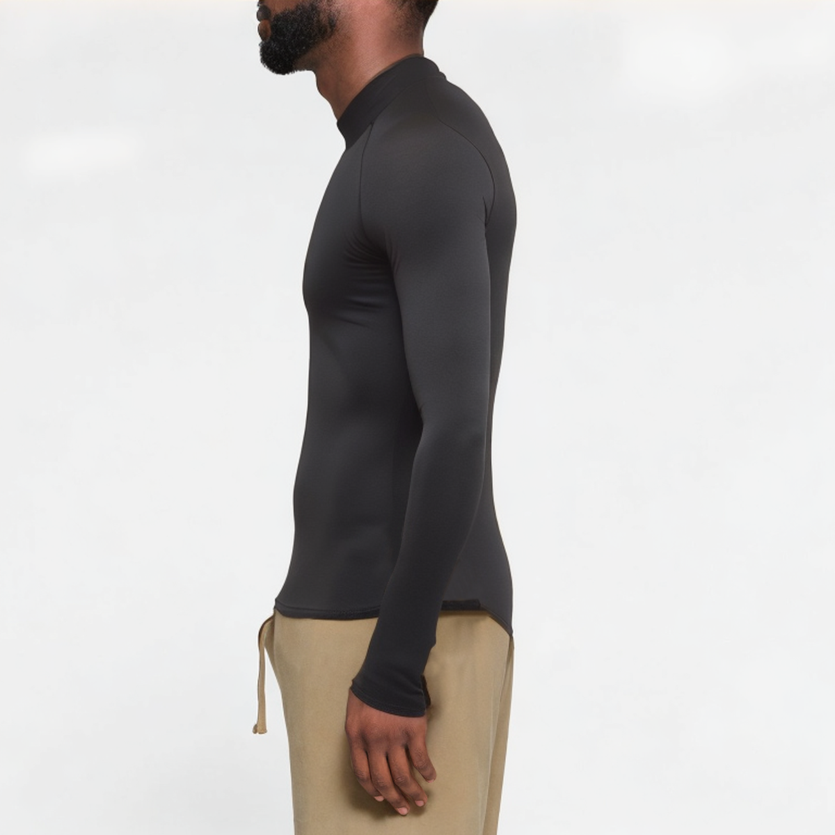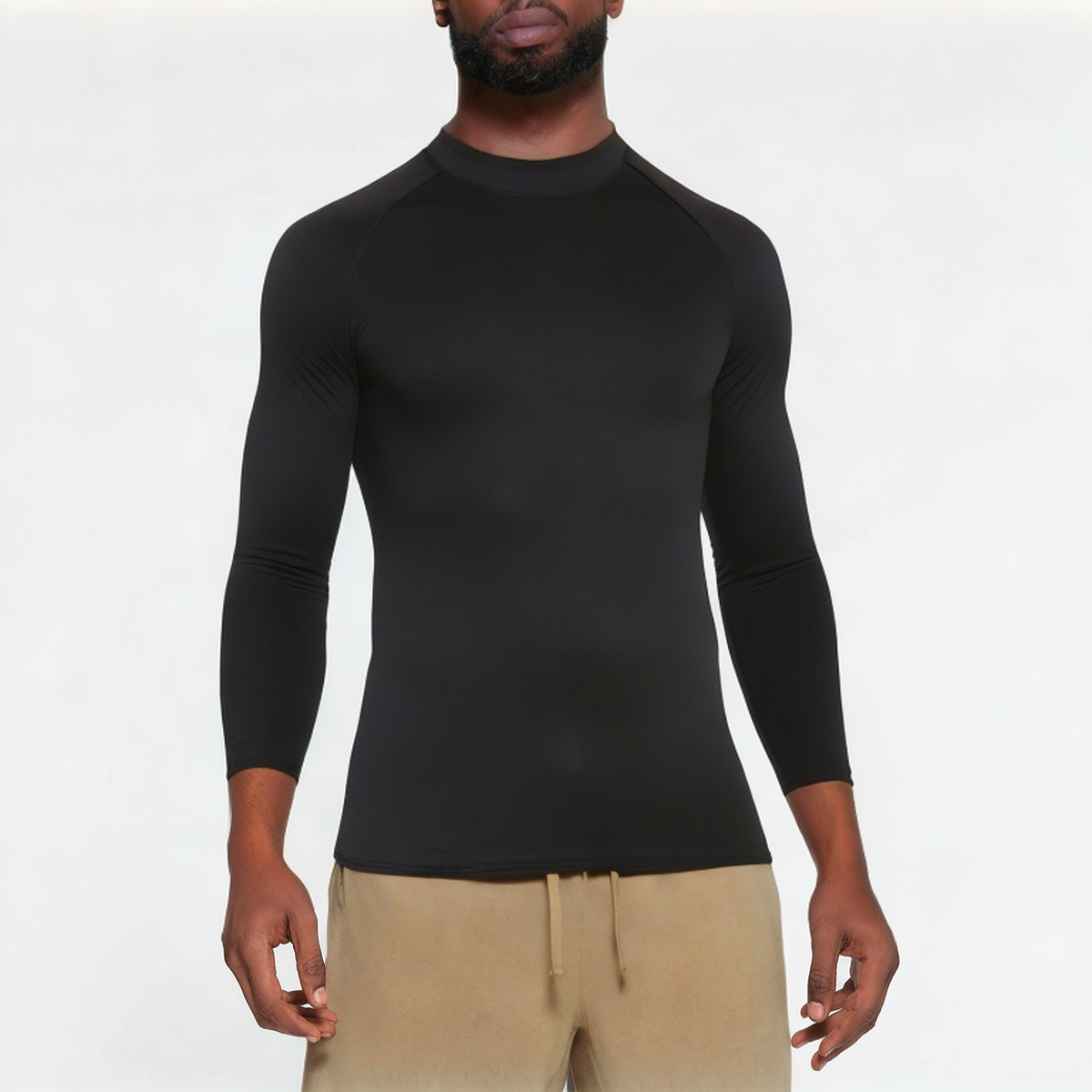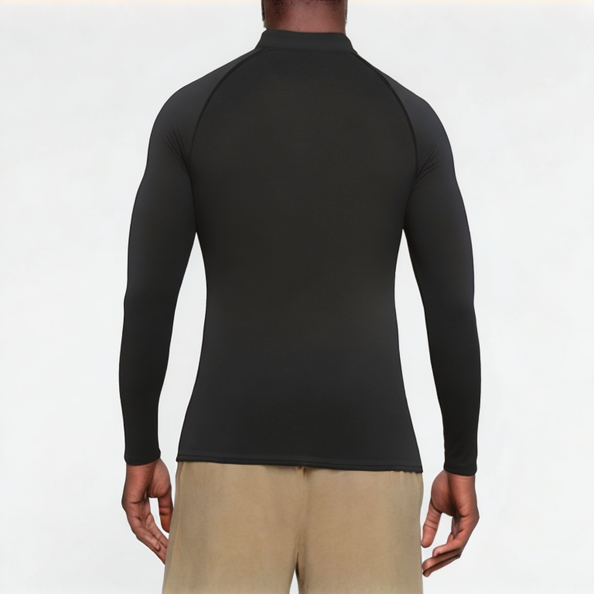 This men’s sports long-sleeved shirt features a high collar design for better protection and is suitable for a variety of sports environments. The solid color design is simple and stylish, and is easy to match with other sports equipment. The seamless process reduces friction and improves the comfort of wearing, ensuring optimal performance during intense exercise. The stretch fabric provides free movement space and perfectly adapts to every movement.