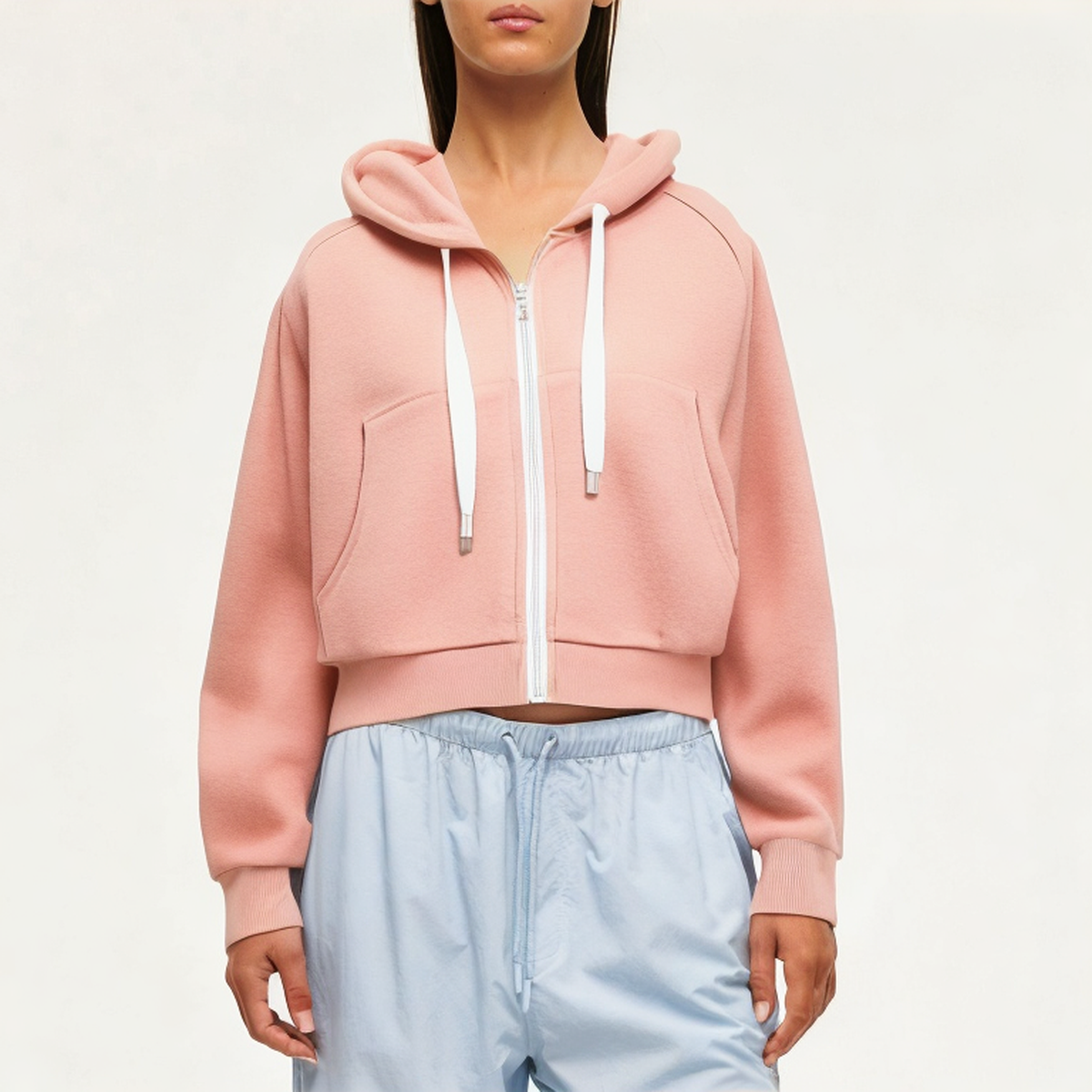 Light pink women’s hooded sweatshirt jacket