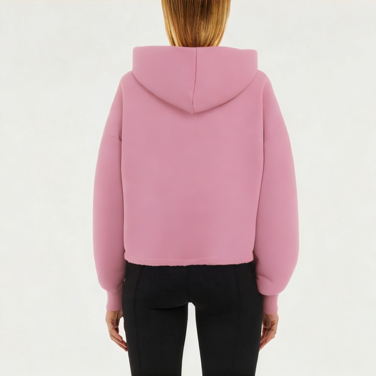 This women’s sports sweatshirt features a solid color design, showing a simple yet stylish look. The hooded design provides you with extra protection, suitable for a variety of outdoor activities and daily leisure. The elastic cuffs design ensures a perfect fit, allowing you to be more comfortable during exercise. The rolled details add a unique style and highlight your personality.