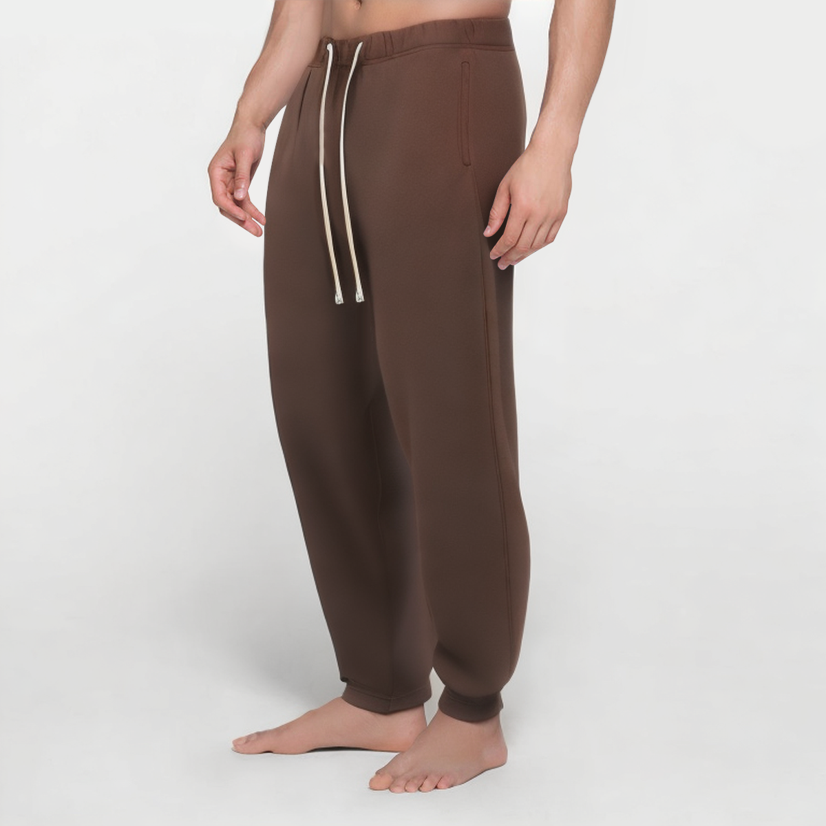 These men’s sports trousers are simple and elegant in a classic solid color design, suitable for many occasions. The loose wide-leg design not only provides a comfortable wearing experience, but also ensures freedom and flexibility when moving. The trousers are equipped with practical pockets for carrying personal belongings. The elastic waist with drawstring can be adjusted according to needs to ensure the perfect fit.