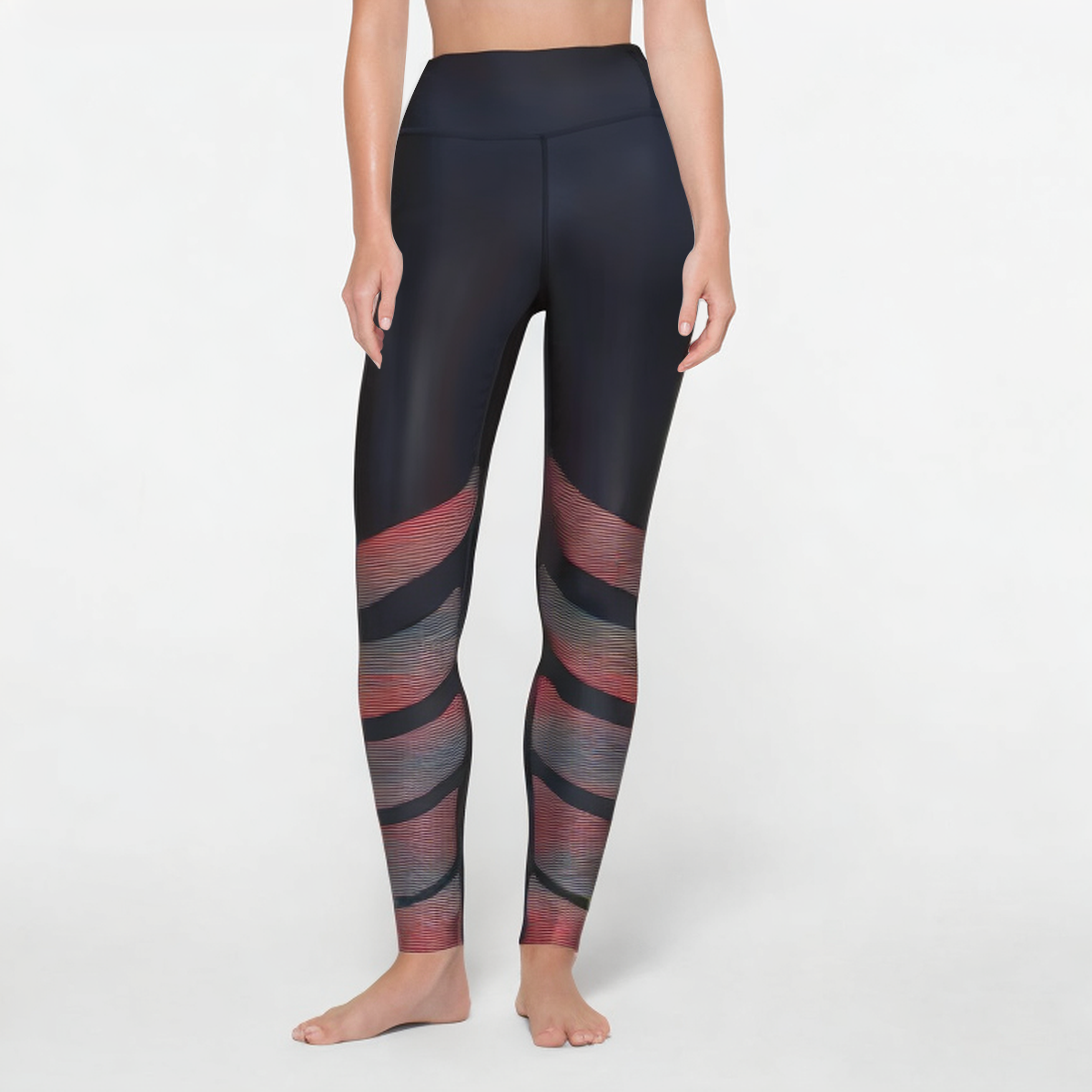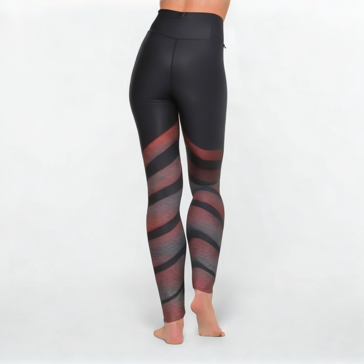 These women’s sports leggings are highlighted by a fashionable print design, showing vitality and personality. The high waist design not only enhances the support of the waist, but also effectively shapes the elegant figure. The tight cut and stretch fabric ensure excellent flexibility and comfort during exercise. There is a zipper pocket on the back for convenient storage of small items.