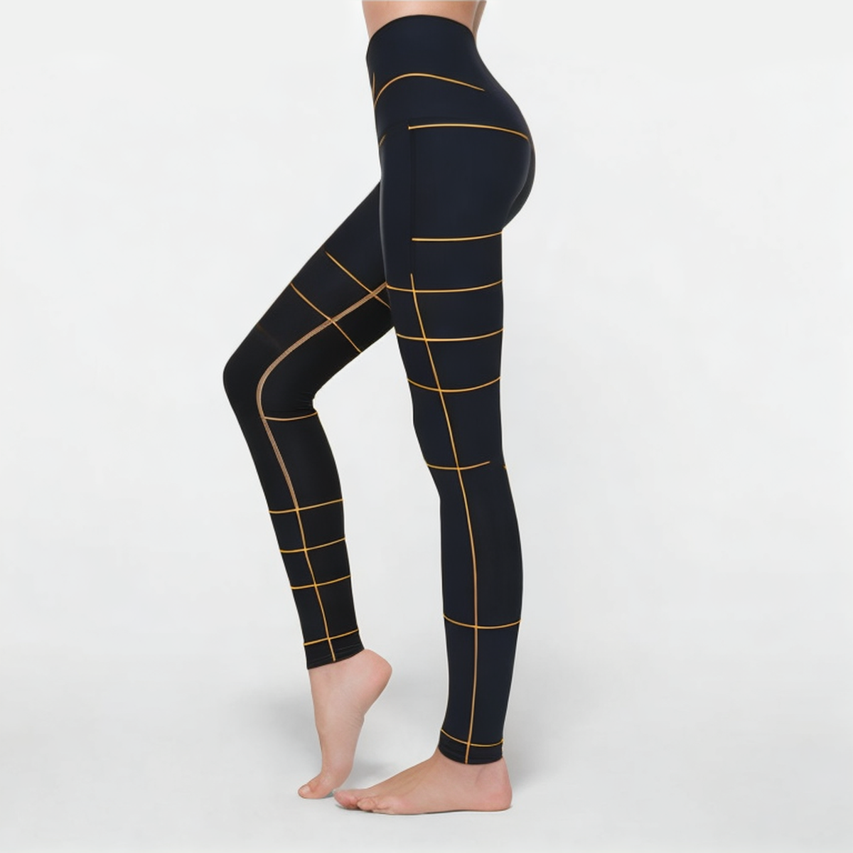 These women’s sports leggings are highlighted by a color-blocked stripe design, adding a sense of vitality and fashion to sports. The high-waist design provides excellent support and perfectly shapes the body, suitable for various sports and daily wear. The seamless structure reduces friction, making it more comfortable to wear and improving flexibility during exercise.