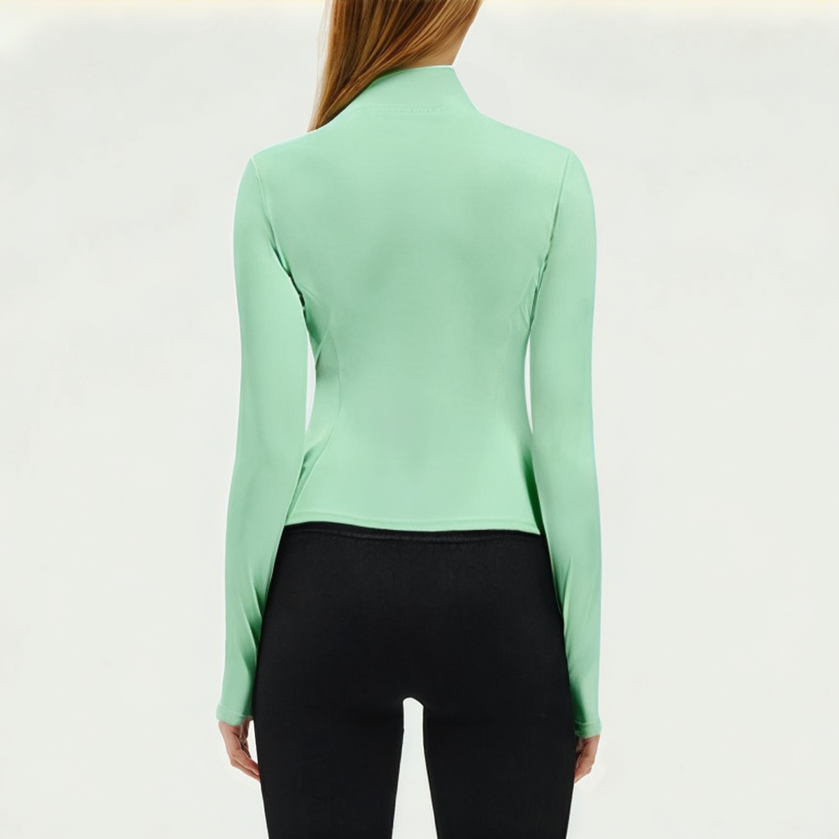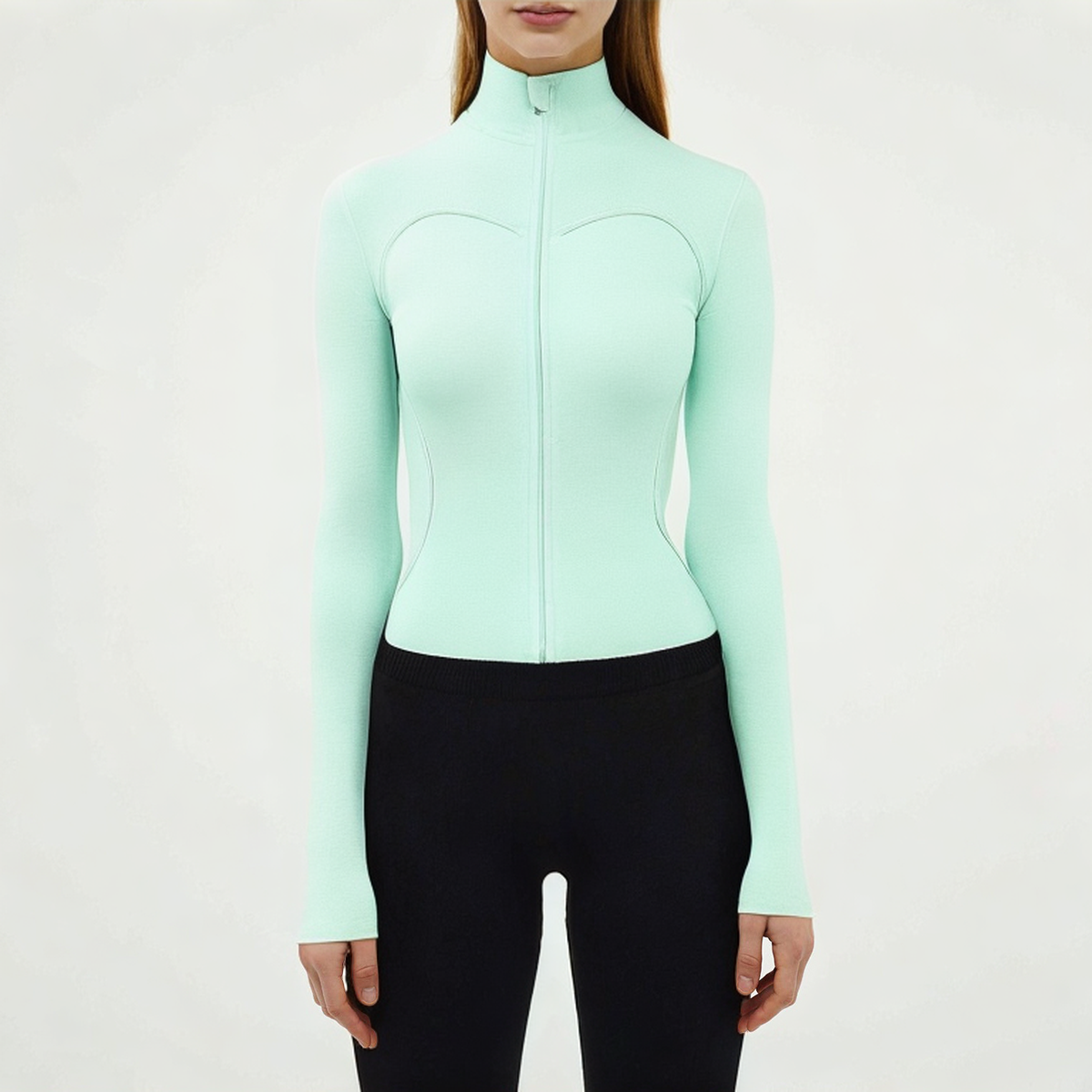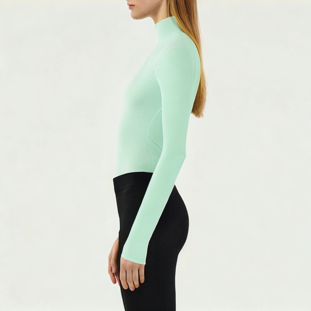 This women’s tight long-sleeved T-shirt features a simple solid color design, a stand-up collar and zipper closure design that provides the perfect combination of fashion and function. The slim fit fits the body curve and highlights the elegant silhouette. The quick-drying and breathable fabric ensures that you stay dry and comfortable when wearing it, which is very suitable for both sports and daily wear.