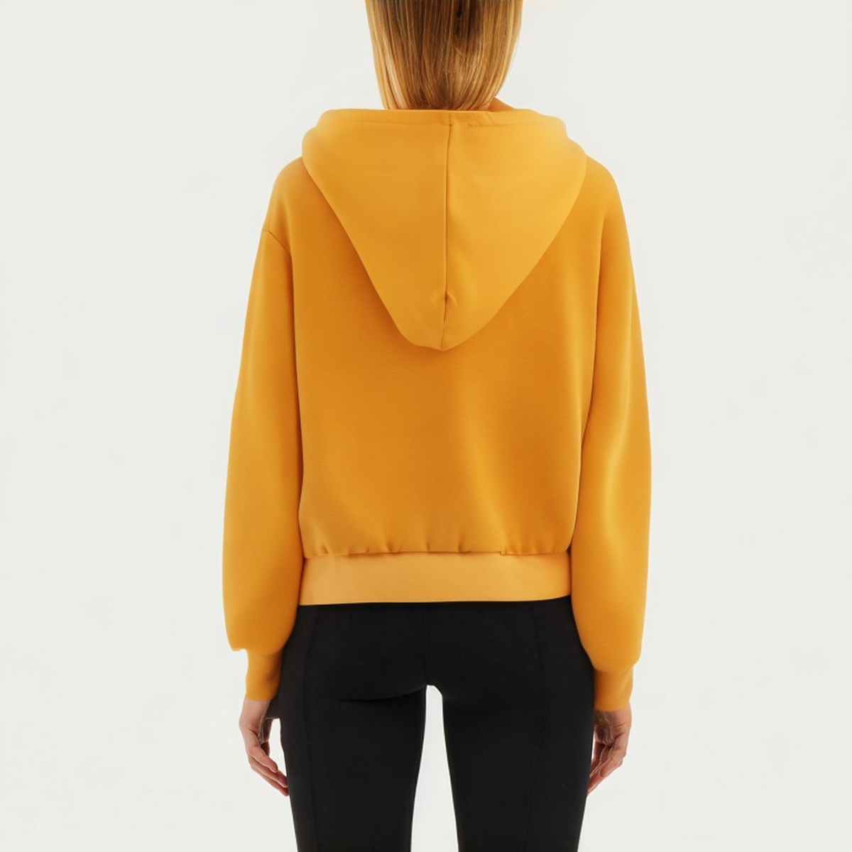 This women’s sports sweatshirt features a classic solid color design, simple and stylish, suitable for a variety of sports and leisure occasions. The hooded design provides you with extra protection while adding a touch of vitality. The elastic cuffs and elastic hem design ensure a perfect fit, allowing you to exercise more freely.